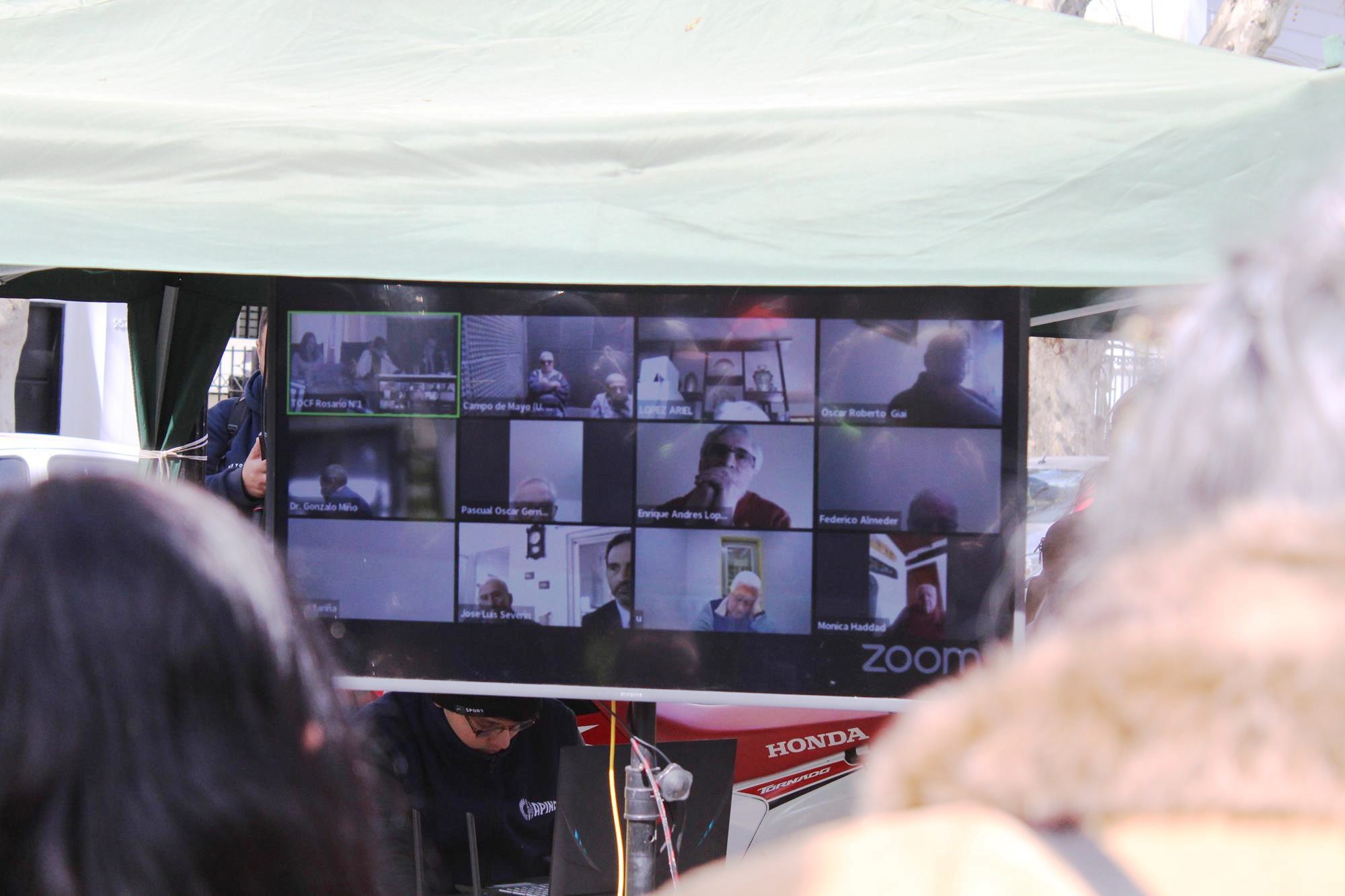 Por zoom, salvo uno que estaba en la sala, los genocidas escuchaban uno a uno sus nombres y cargos.