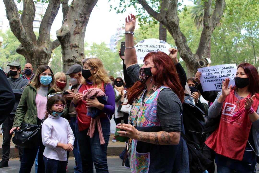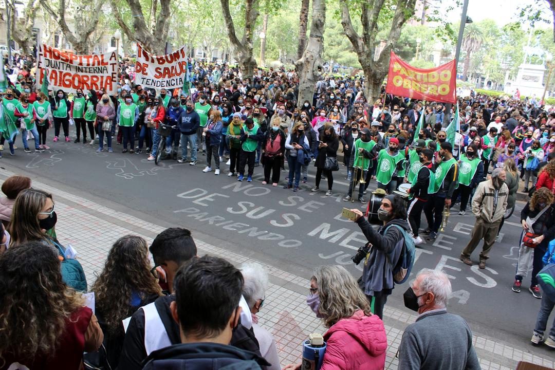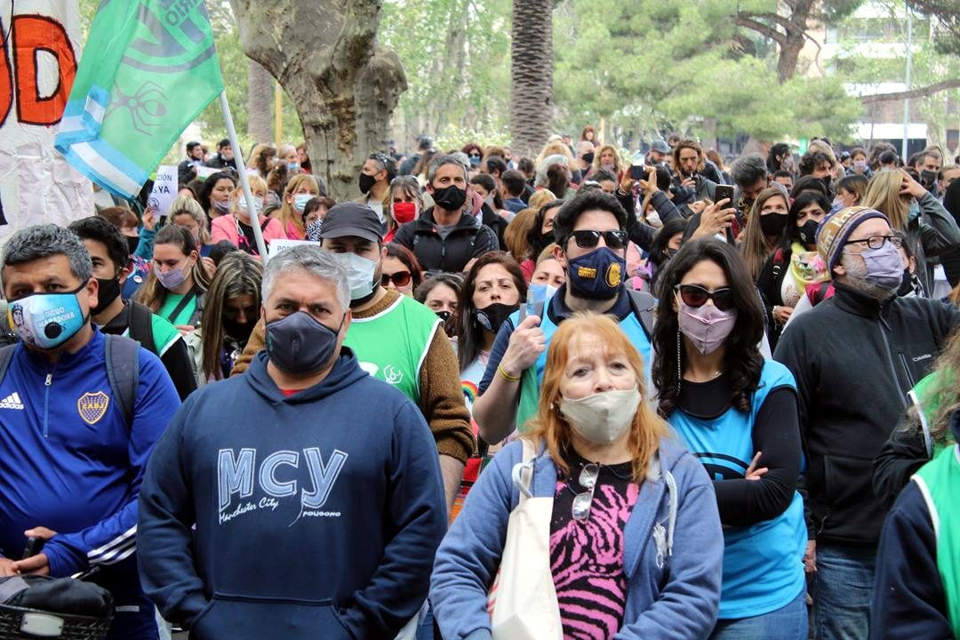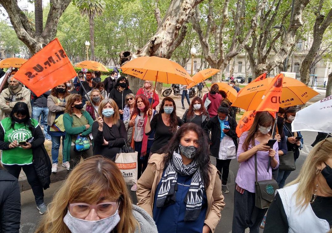 “Tuvimos que salir a pelear los elementos de protección personal y los elementos de limpieza, por las condiciones de trabajo y de infraestructura que son pésimas, para que los pibes y las pibas de los barrios, pudieran comer esos bolsones que no tenían ni carne ni fruta. Hoy mismo estamos teniendo problemas. No podemos volver a tener los comedores escolares en las escuelas porque no tenemos aulas porque está siendo utilizando el comedor para poder dar clases. Por qué no hicieron algo en este año y medio, por qué no invirtieron en salud y educación Hoy estamos en esta situación porque no hubo decisión política para poder hacerlo”, cuestionó.