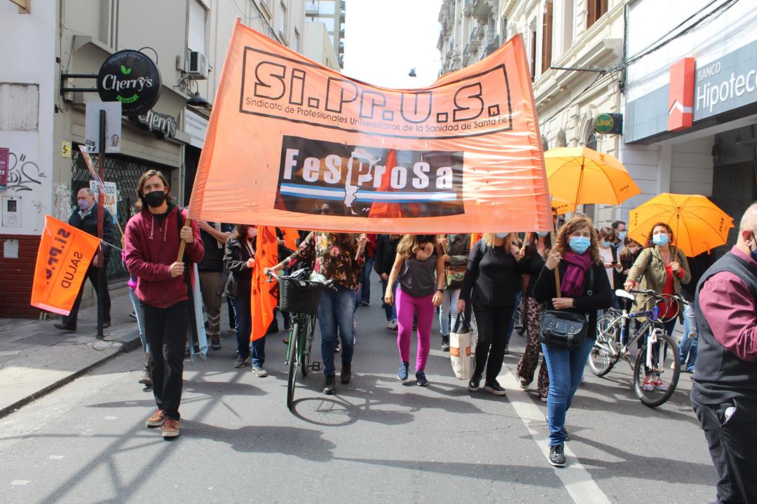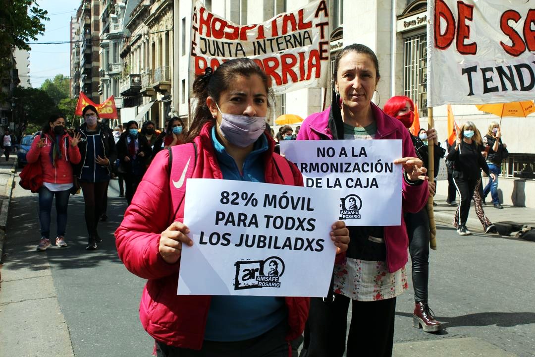 Desde Plaza 25 de Mayo hacia la Plaza San Martín una imponente columna conformó la gran marcha unitaria de Amsafe Rosario, ATE Rosario y Siprus. La bronca por la desidia gubernamental se hizo alegría de lucha colectiva en una movida que se vio como un colorido, enorme y emotivo catalizador colectivo.
