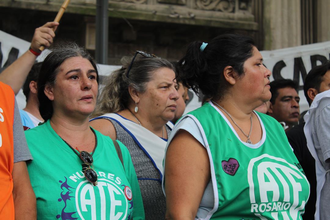 Mientras una marcha recorría desde Plaza Sarmiento a la San Martín, los y las docentes nucleadas en AMSAFE Rosario y estatales de ATE concentraron frente a Gobernación. Los maestros recordaron con intervenciones artísticas a Fuentealba y reclamaron salarios en su segunda jornada de paro. Lo mismo hicieron los y las profesionales de la salud pública.