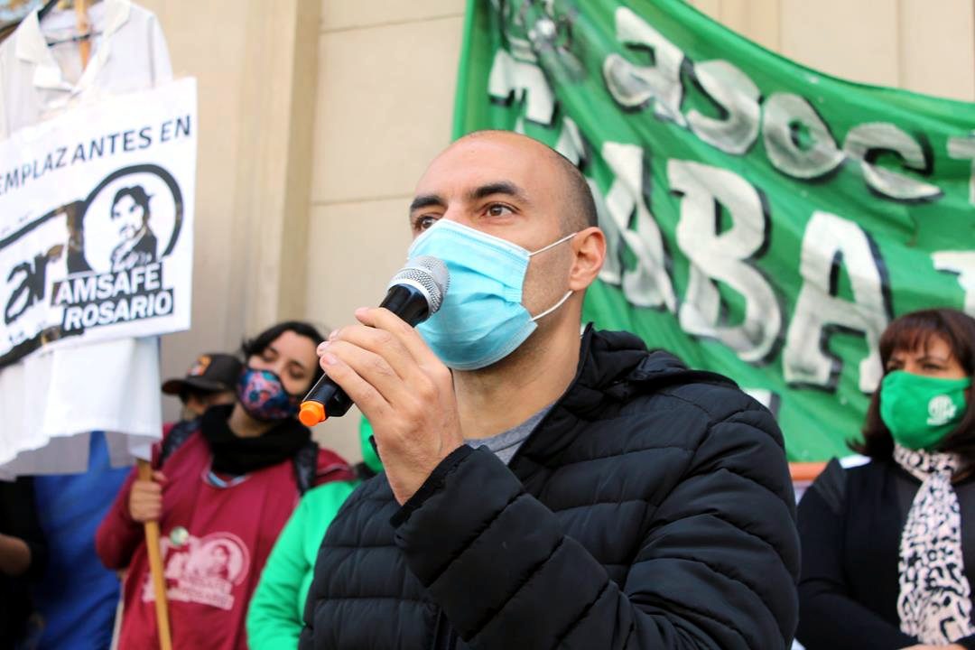 “Tenemos que romper la falsa dicotomía entre salir a la calle siendo irresponsables haciéndole el juego a la derecha, y defender nuestros derechos y cuidar nuestras vidas. No tenemos nada que ver con las iniciativas de la derecha fascista, vamos contra sus políticas que hambrean al pueblo, contra las políticas del gobierno provincial que es de ajuste. Si hubiera una posición democrática no tendríamos necesidad de este tipo de cosas. Perotti puso en cuarentena la paritaria antes del inicio de la pandemia”, denunció el Secretario General de la CTAA local y Amsafe Rosario, Gustavo Terés.