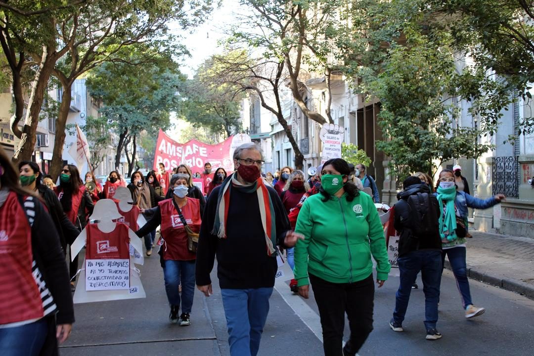 Sobre la precarización laboral, Almirón consideró “inadmisible que habiendo 7.000 cargos sin cubrir en la provincia, 4.500 trabajadoras y trabajadores estén sin trabajo”. Por parte de SIPRUS, recordaron que hay profesionales abocados a la crisis sanitaria a quienes se les adeuda hasta ocho meses de salario. “El gobierno nos invisibilizó, nos ninguneó, no nos tuvo en cuenta y realmente esto no da para más. Por eso tanta bronca hay que hoy vinimos nuevamente como lo hicimos desde el primer día”, expresó la referente de ATE.
