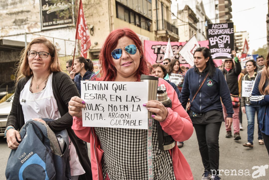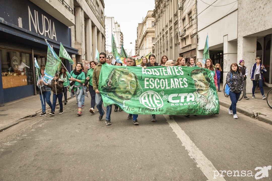 Ante esto, las federaciones nacionales docentes de todos los niveles llamaron a un paro y movilizaron en todo el país. En Rosario, se sumó la Asociación Trabajadores de Estado. La marcha partió de Plaza 25 de Mayo hacia la San Martín y contó con la entrañable presencia de Sergio Maldonado, hermano de Santiago, y de Marta Montero, madre de Lucía Pérez, joven que fue violada y asesinada en Mar del Plata y cuyo crimen sigue impune.