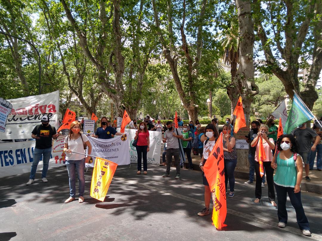 El sector salud nucleado en SIPRUS y ATE exigió pase a planta para monotributistas, pago de adicionales, cambio de escalafón, pago de deudas y, con especial énfasis, la implementación de una licencia extraordinaria por Covid para frenar el desgaste del personal que, incluso desde antes de la pandemia, carece de licencias.