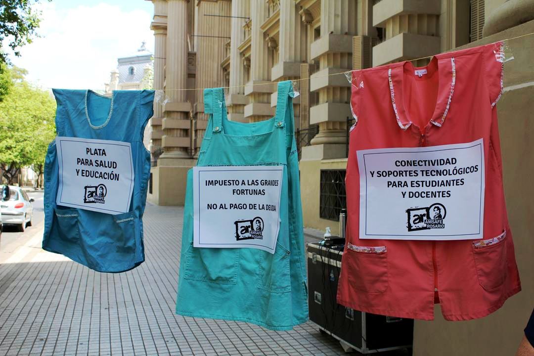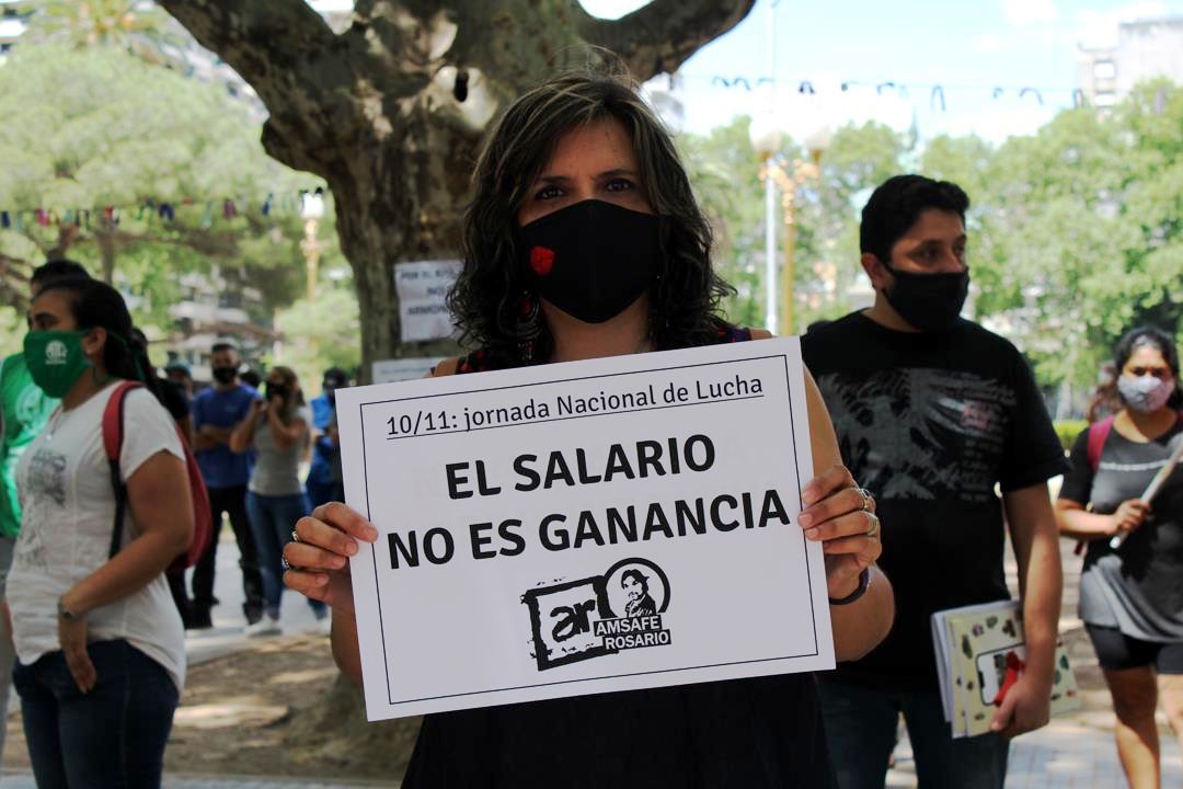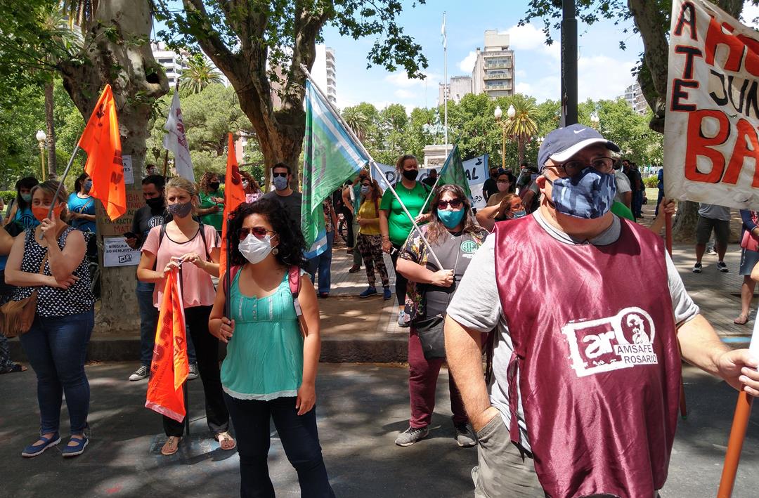 Al pliego reivindicativo común, cada gremio sumó sus reclamos. Amsafe Rosario denunció el descuento por impuesto a las ganancias de los salarios e insistió en el pago de un sueldo de emergencia para reemplazantes, un punto compartido con ATE Rosario. El sindicato estatal apuntó también a la implementación de protocolos con participación de les trabajadores para hacer frente a la pandemia en educación. Ambas organizaciones advirtieron que no están dadas las condiciones para la vuelta a clases.