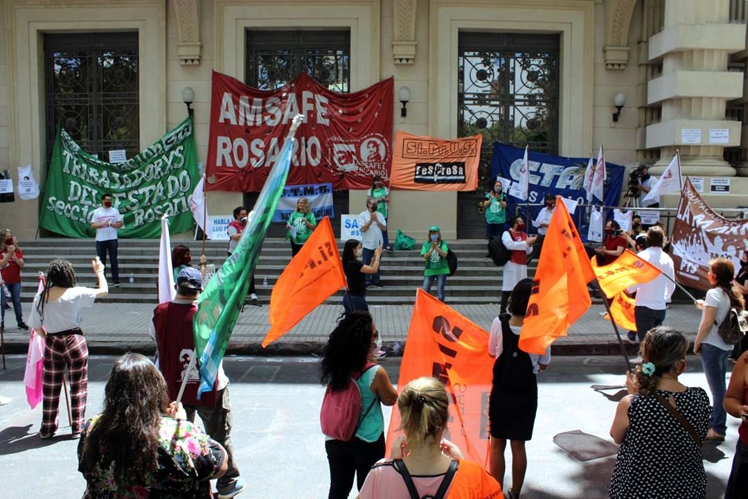 Amsafe Rosario, Siprus a nivel provincial y los sectores salud y educación dentro de ATE Rosario, realizaron un paro de 24 horas en el marco de la Jornada Nacional de Lucha realizada este 11 de noviembre. Al acto se sumaron además les trabajadores del Sindicato de Trabajadores Municipales.