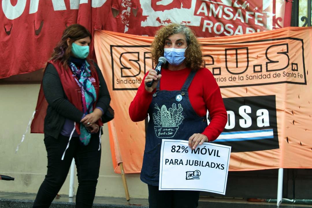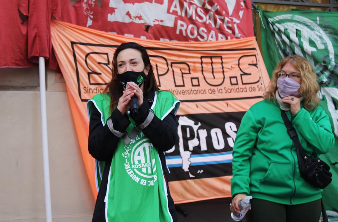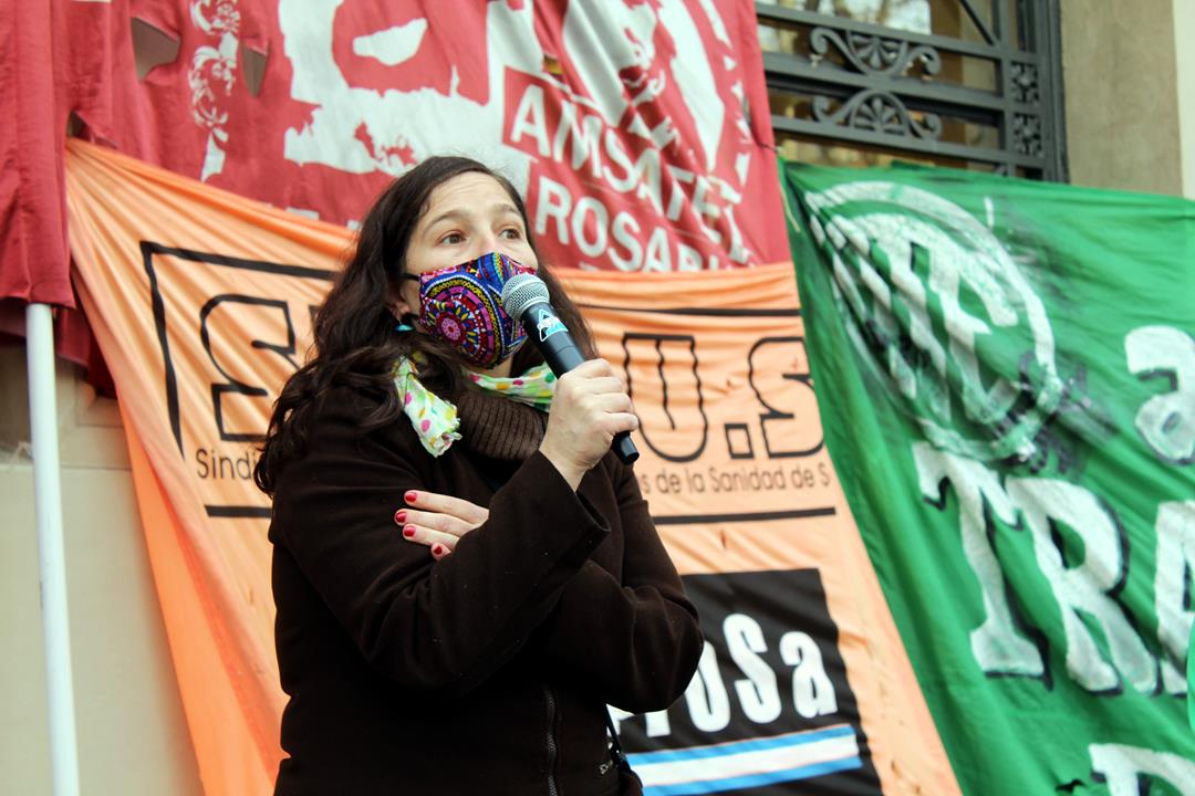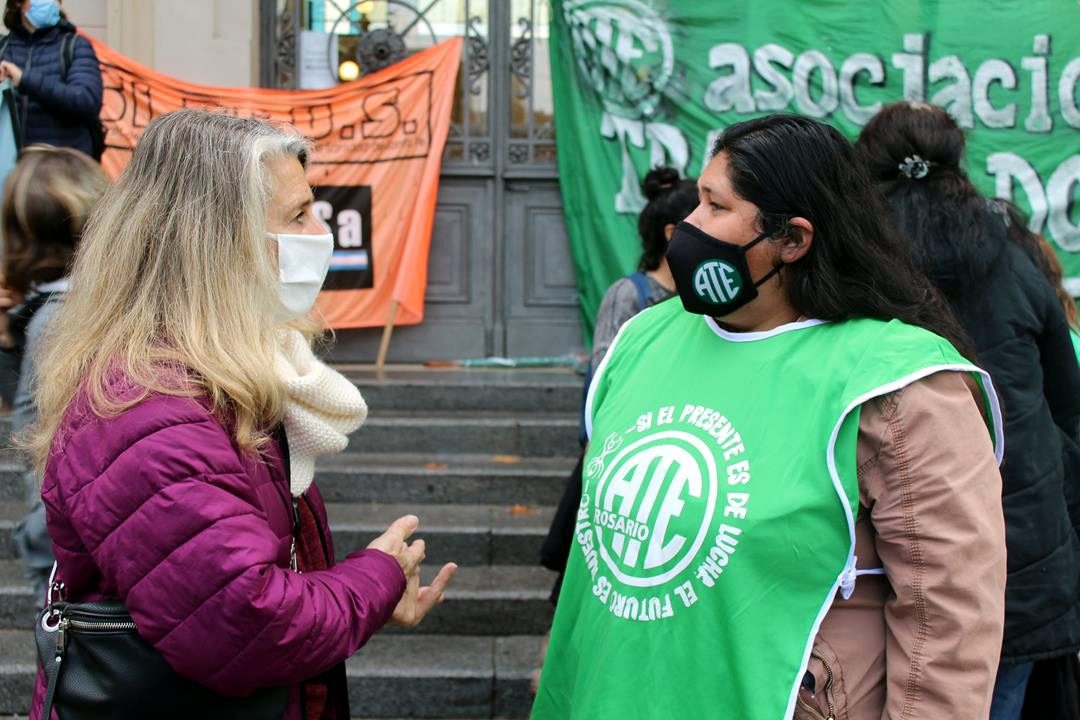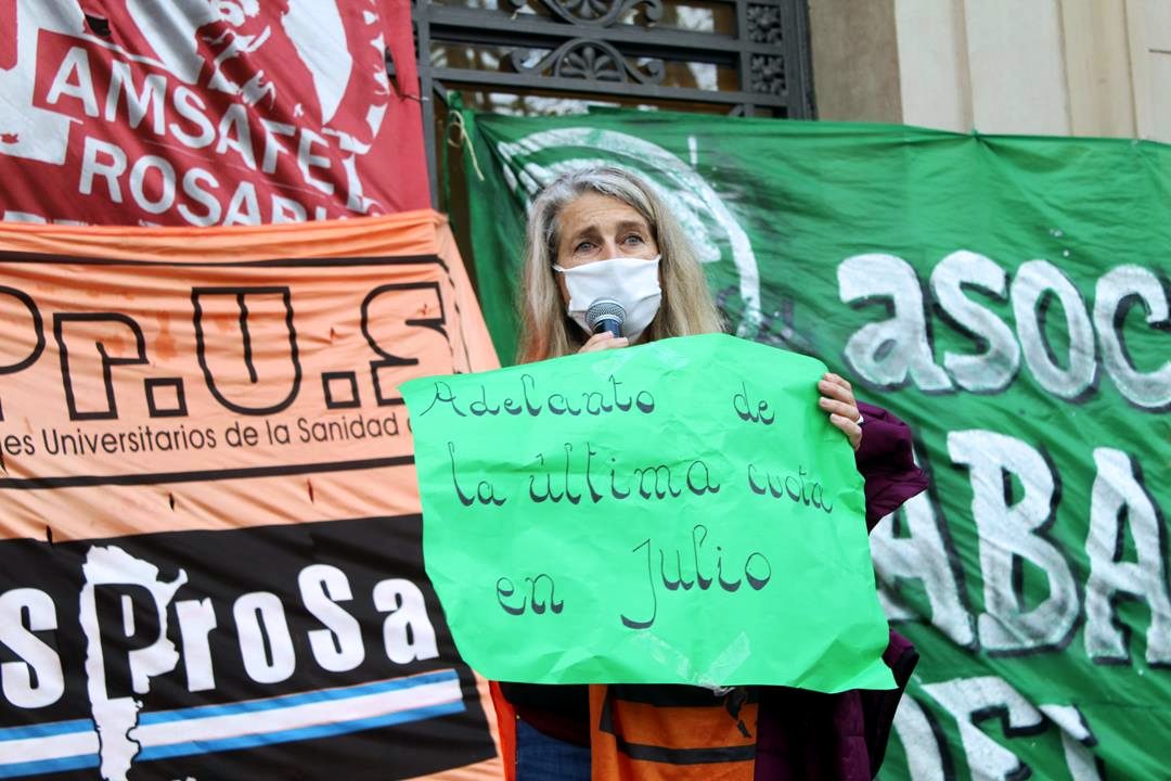 “Las y los trabajadores ponemos constantemente el cuerpo sin respuestas por parte de los gobiernos. Estamos reclamando que se adelante la última cuota del aumento pautado para este año, que fue del 35% en tres cuotas. La última cuota del 9%, creemos que debe cobrarse en agosto y reabrir la paritaria en septiembre, no el año que viene como pretende el gobierno. Hoy los trabajadores y trabajadoras estamos por debajo de la línea de pobreza, con salarios miserables y el gobierno, los gobiernos, nos tratan como desechables”, planteó la Secretaria de Organización de la CTAA y Secretaria General de ATE Rosario, Lorena Almirón.