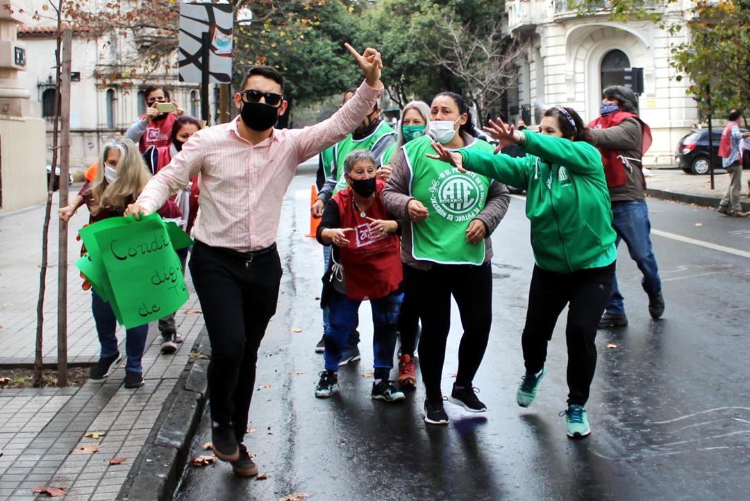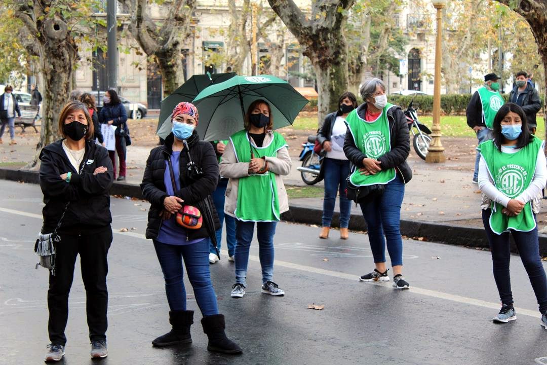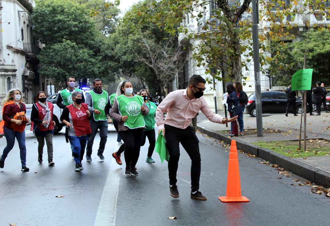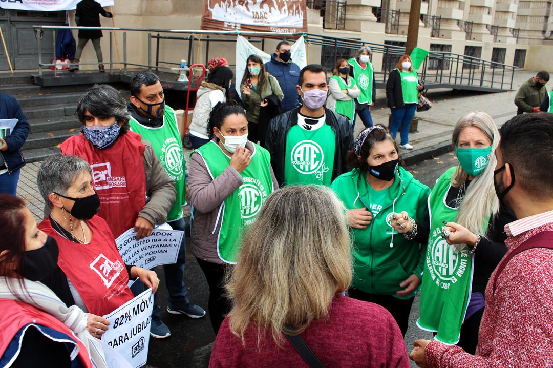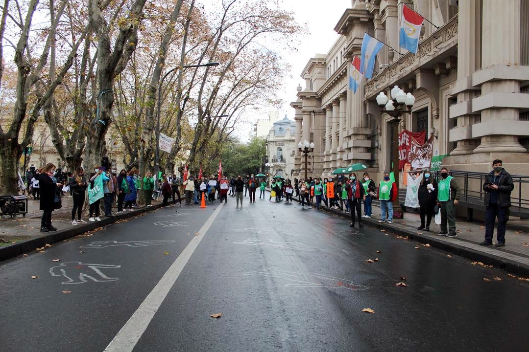 La intervención frente a la sede de Gobernación fue en el marco de un paro de 24 horas de la Seccional Rosario de ATE, una desobligación de 10.30 a 14.30 horas de Amsafe local y una jornada nacional de la federación que nuclea a profesionales de la salud enrolados en SIPRUS.