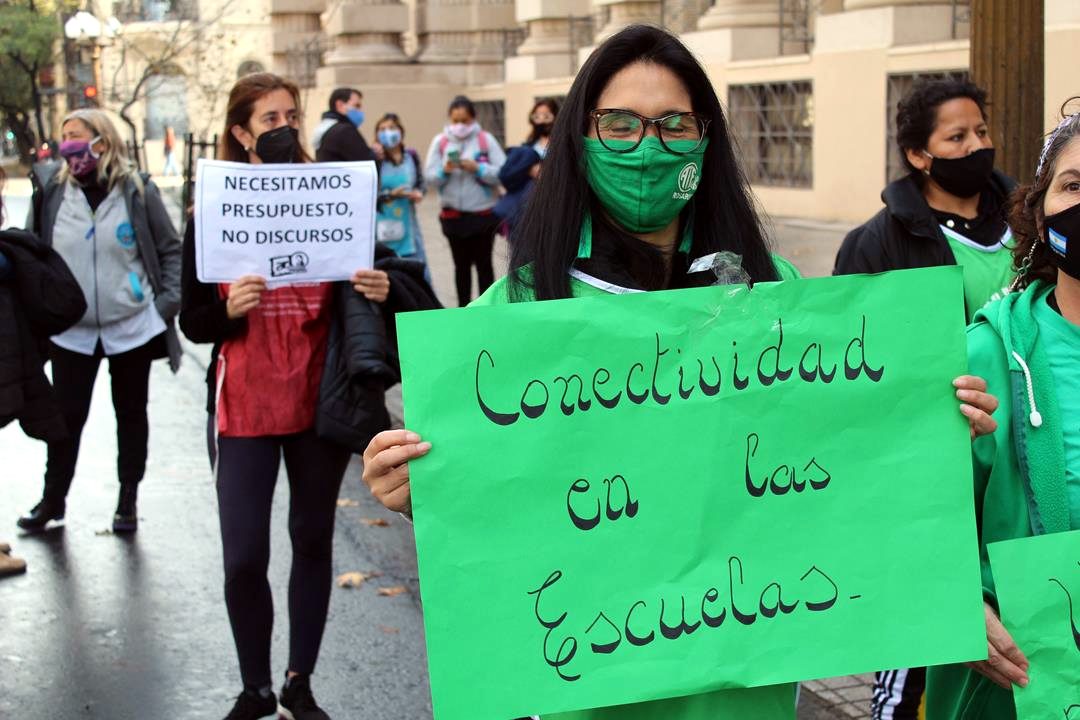 Durante el acto, tomaron la palabra compañeras de escuelas que sufren carencias de servicios elementales, de la Dirección de Justicia Penal Juvenil que lograron que se reinstale a compañeros del área y del sector salud nacional, entre otres.