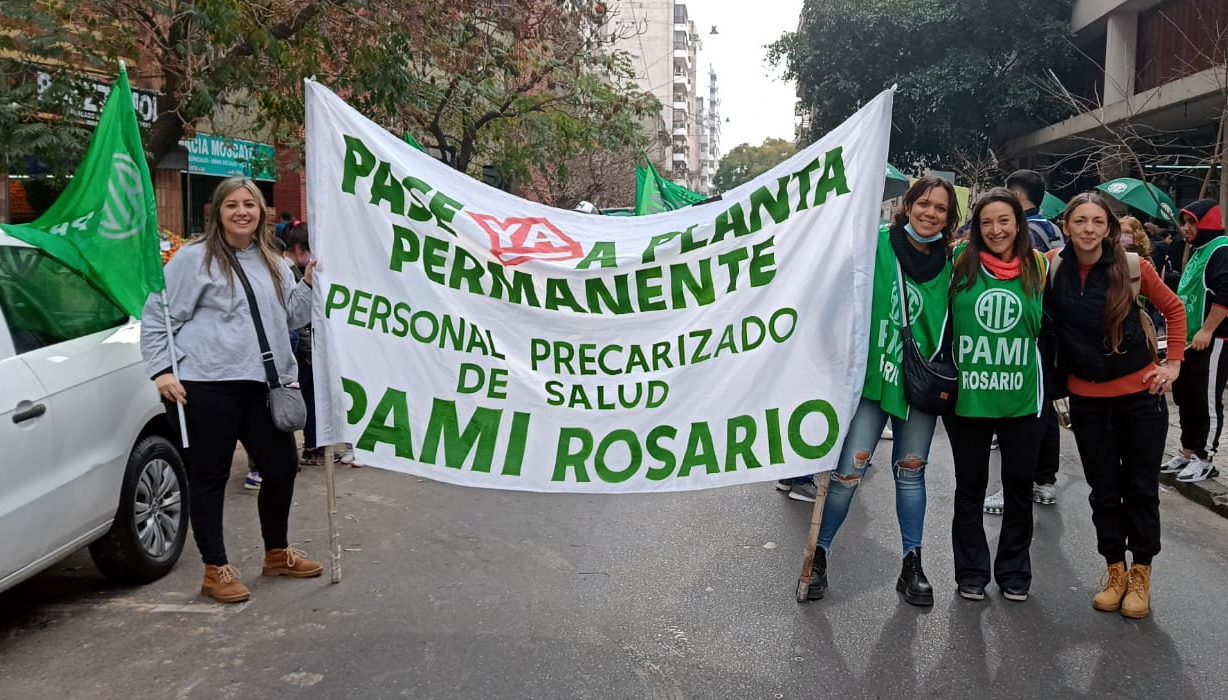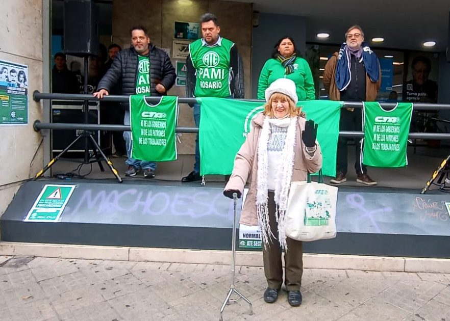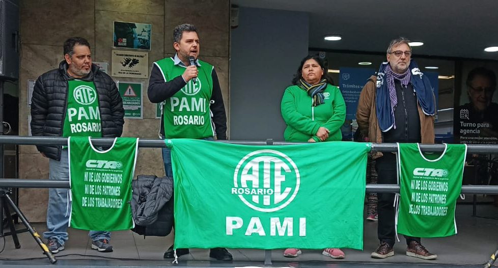 Este jueves la CTAA Rosario reclamó por salarios dignos, reapertura de paritarias y pase a planta, en el marco del paro, marcha y acto de trabajadorxs de PAMI Rosario. Producto de la lucha, las autoridades de la obra social de lxs jubiladxs llamaron a una negociación el lunes.